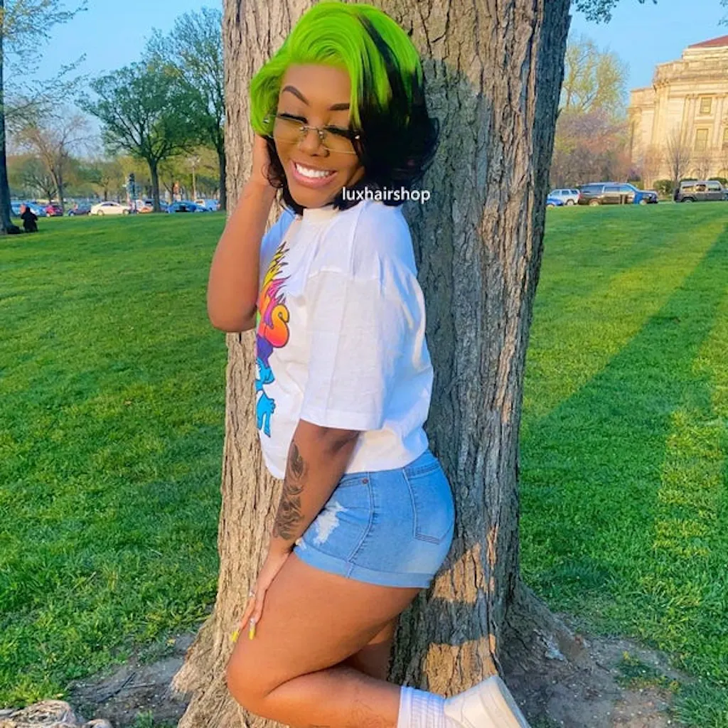 Peruvian Hair Gradient Green Black Highlights Body Wavy Lace Front Wig