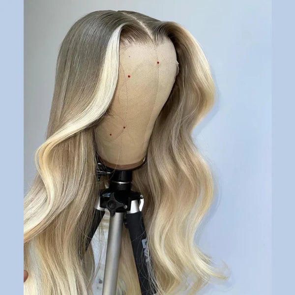 On Sale Peruvian Hair Ice Blond With Dark Root Color Lace Front Wig